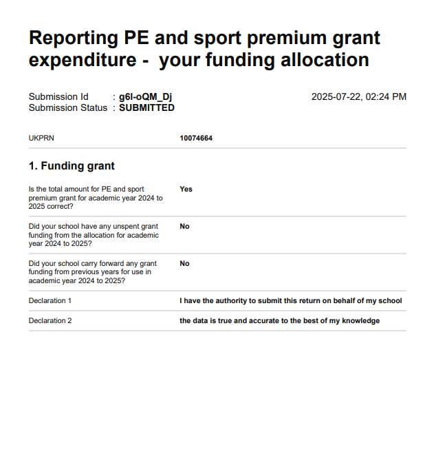2024/25 - see below report submitted online
