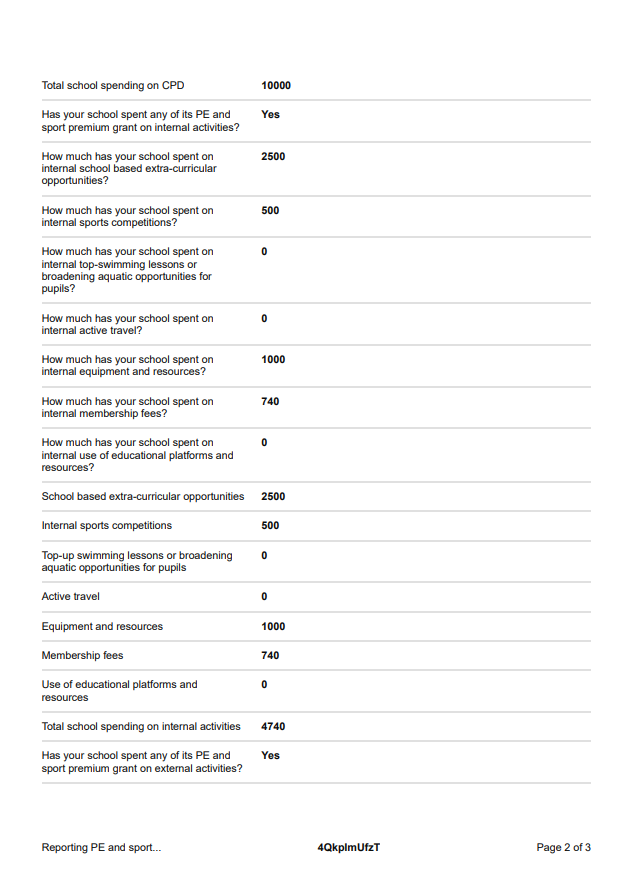 PE & Sports Premium report