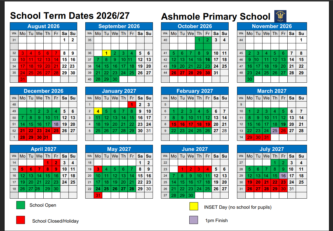 * Please note that Nursery and Reception children will have different start dates for September 2026 due to the staggered start. These dates will be communicated to individual families via letter before the end of this school year (July).